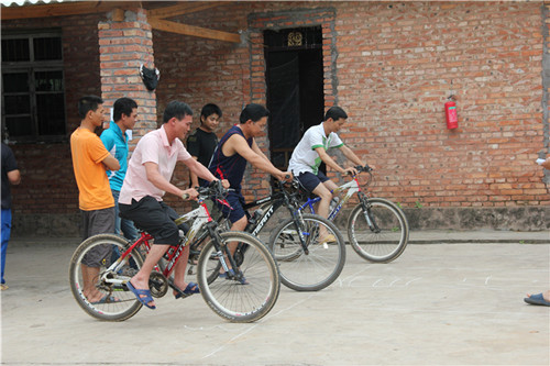 每組三人,劃定始末區(qū)域,由組織者發(fā)號施令,雙腳不能著地,最慢到達(dá)終點(diǎn)者獲勝。兄弟們仿佛放慢了日常緊張的工作生活,全神貫注定住單車,以最慢速度到達(dá)終點(diǎn)。
